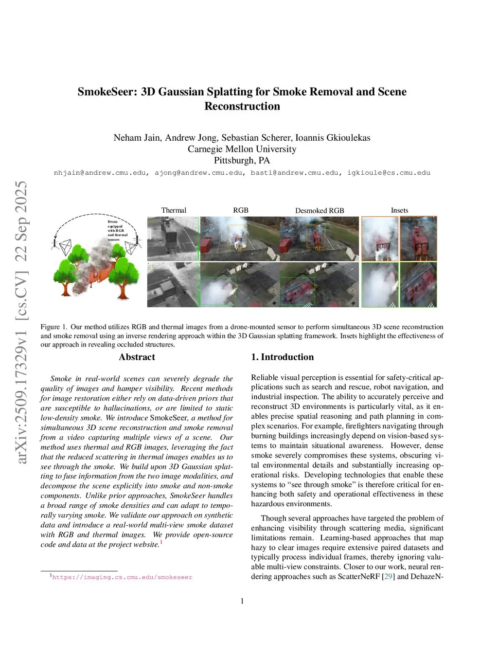 SmokeSeer: 3D Gaussian Splatting for Smoke Removal and Scene Reconstruction