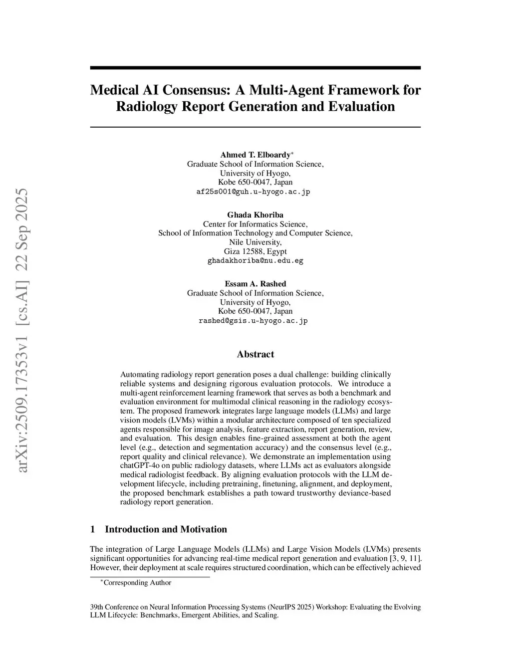 Medical AI Consensus: A Multi-Agent Framework for Radiology Report Generation and Evaluation