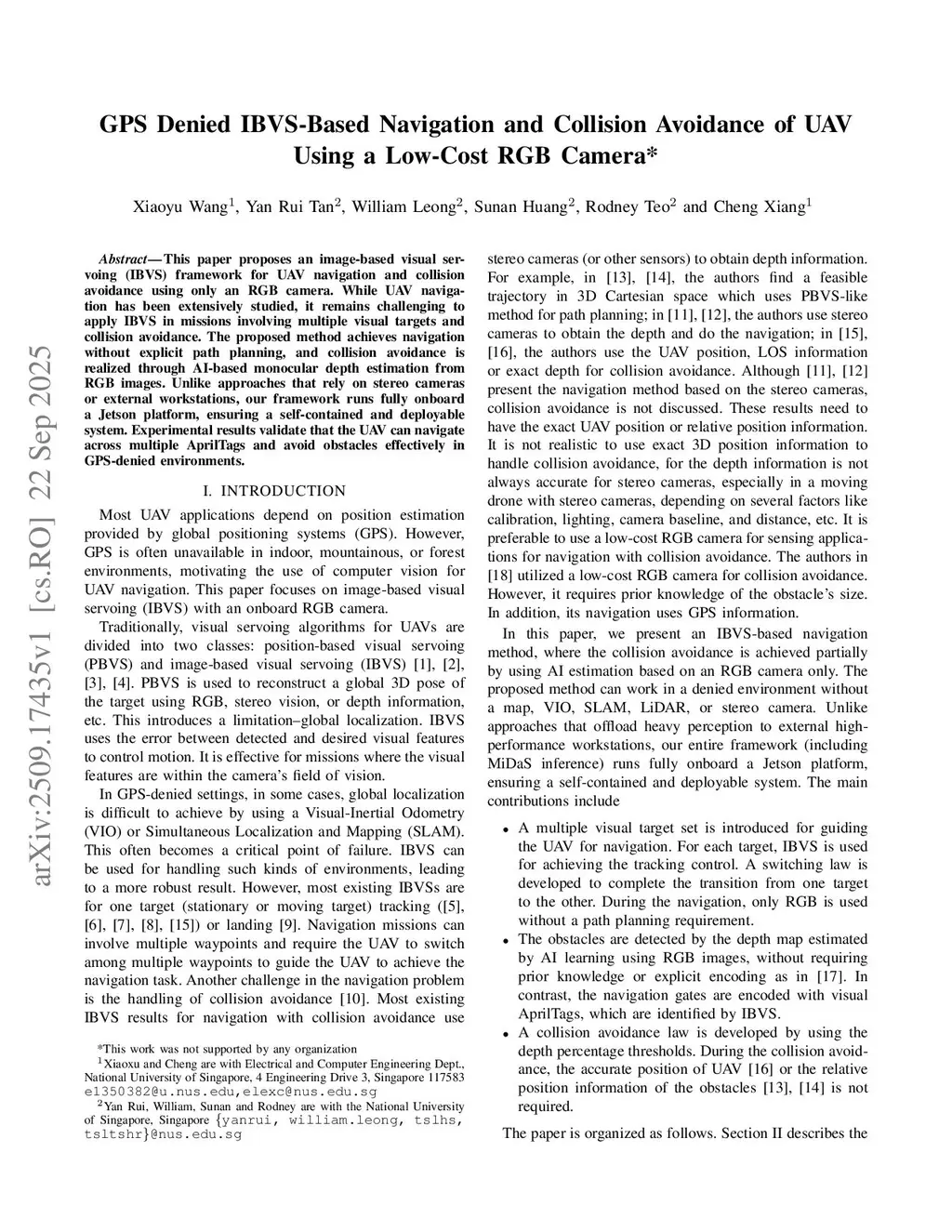 GPS Denied IBVS-Based Navigation and Collision Avoidance of UAV Using a Low-Cost RGB Camera