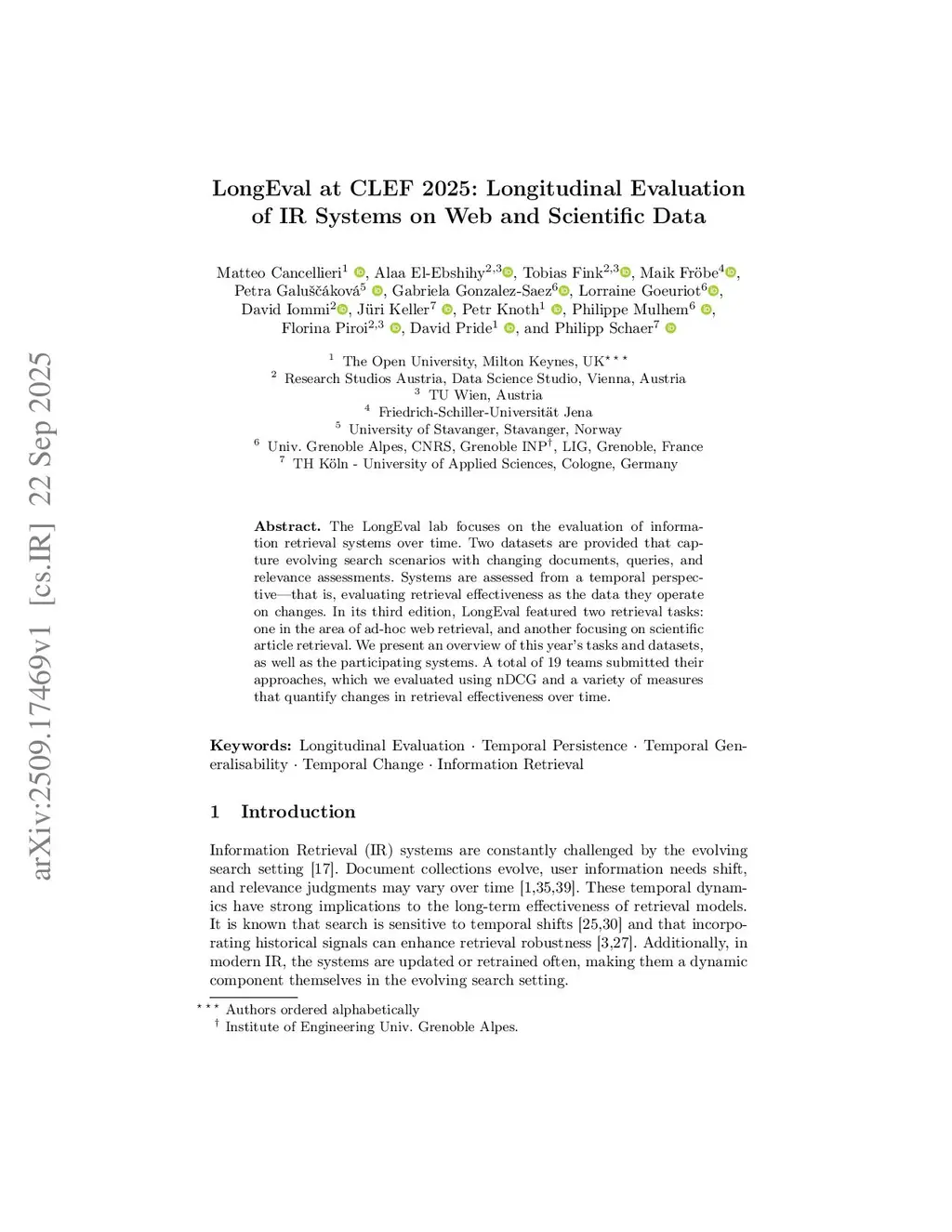 LongEval at CLEF 2025: Longitudinal Evaluation of IR Systems on Web and Scientific Data