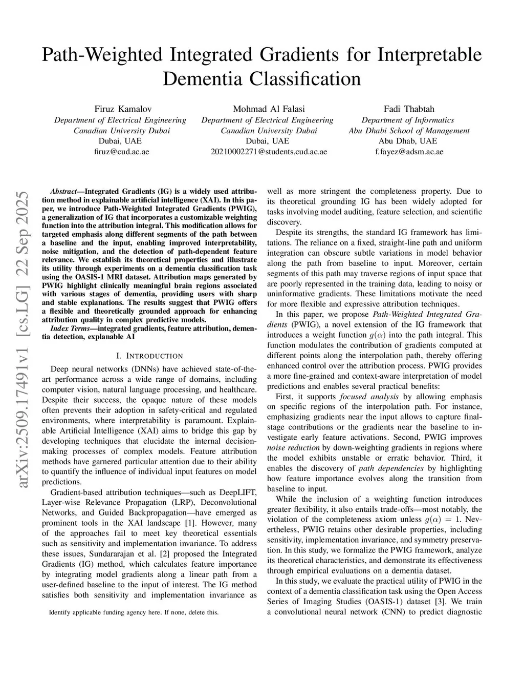 Path-Weighted Integrated Gradients for Interpretable Dementia Classification