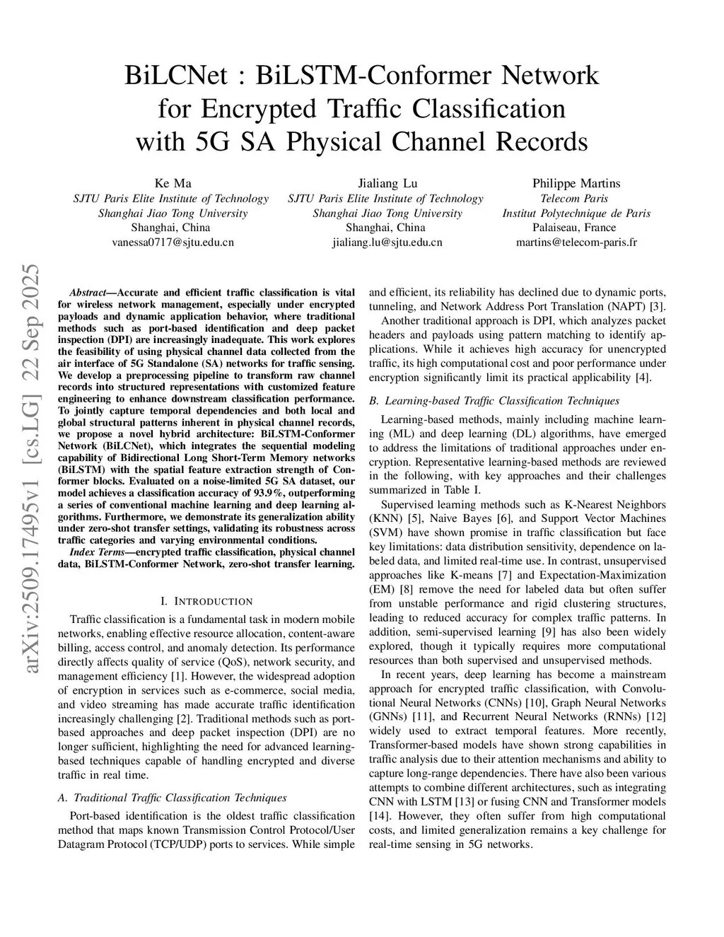 BiLCNet : BiLSTM-Conformer Network for Encrypted Traffic Classification with 5G SA Physical Channel Records