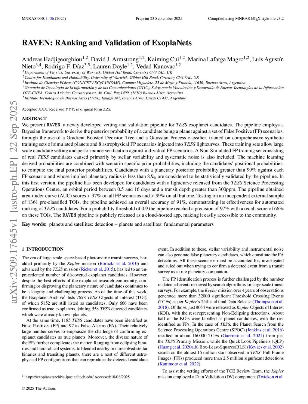 RAVEN: RAnking and Validation of ExoplaNets
