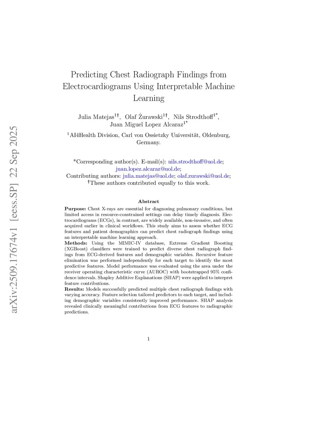 Predicting Chest Radiograph Findings from Electrocardiograms Using Interpretable Machine Learning