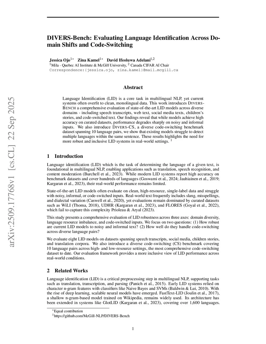 Language Identification (LID) is a core task in multilingual NLP, yet current systems often overfit to clean, monolingual data. This work introduces DIVERS-BENCH, a comprehensive evaluation of state-of-the-art LID models across diverse domains, including speech transcripts, web text, social media texts, children's stories, and code-switched text. Our findings reveal that while models achieve high accuracy on curated datasets, performance degrades sharply on noisy and informal inputs. We also introduce DIVERS-CS, a diverse code-switching benchmark dataset spanning 10 language pairs, and show that existing models struggle to detect multiple languages within the same sentence. These results highlight the need for more robust and inclusive LID systems in real-world settings.