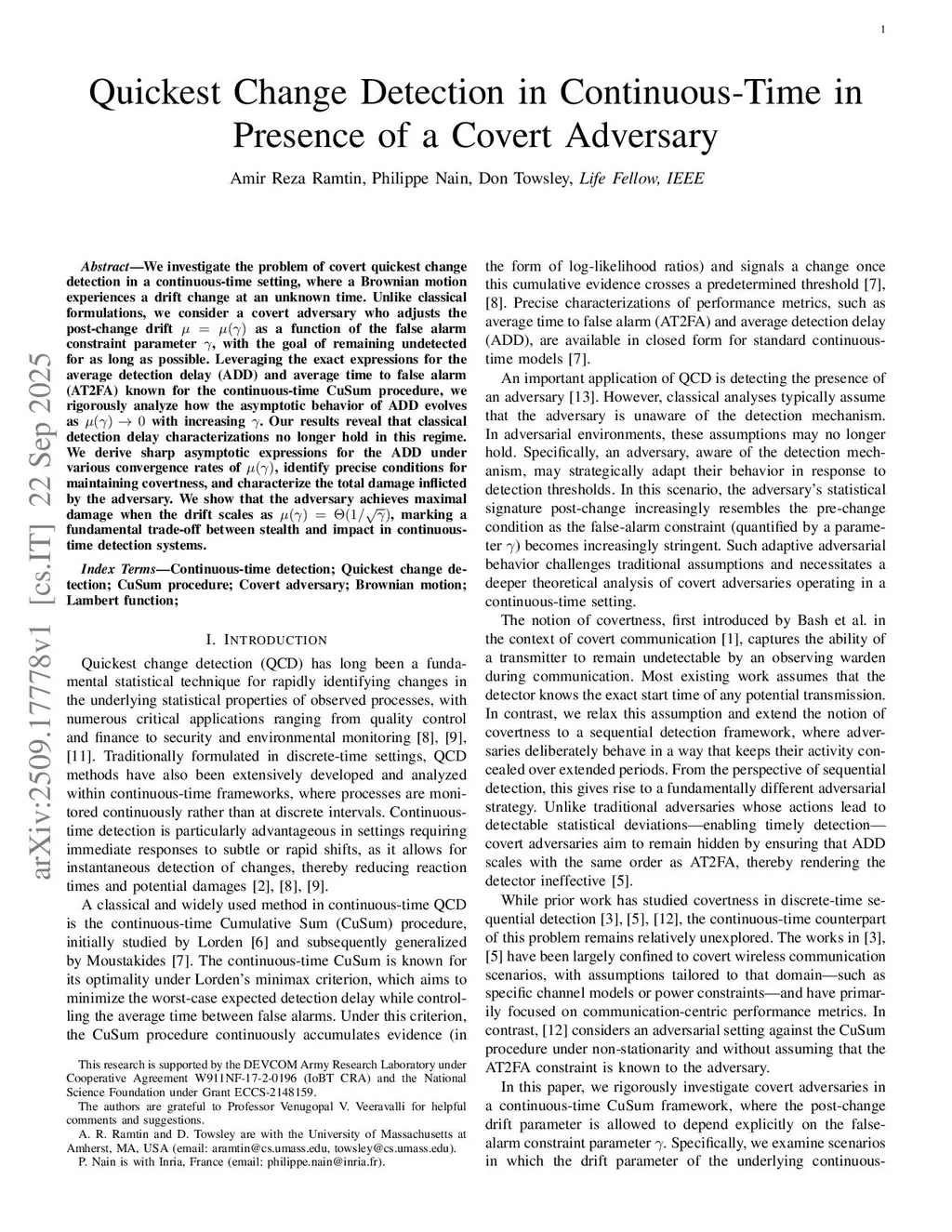 Quickest Change Detection in Continuous-Time in Presence of a Covert Adversary