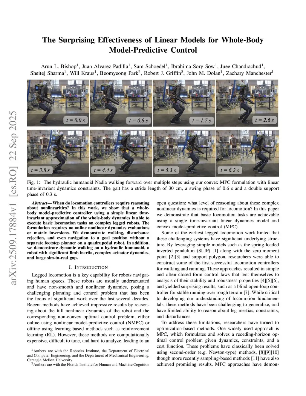 When do locomotion controllers require reasoning about nonlinearities? In this work, we show that a whole-body model-predictive controller using a simple linear time-invariant approximation of the whole-body dynamics is able to execute basic locomotion tasks on complex legged robots. The formulation requires no online nonlinear dynamics evaluations or matrix inversions. We demonstrate walking, disturbance rejection, and even navigation to a goal position without a separate footstep planner on a quadrupedal robot. In addition, we demonstrate dynamic walking on a hydraulic humanoid, a robot with significant limb inertia, complex actuator dynamics, and large sim-to-real gap.