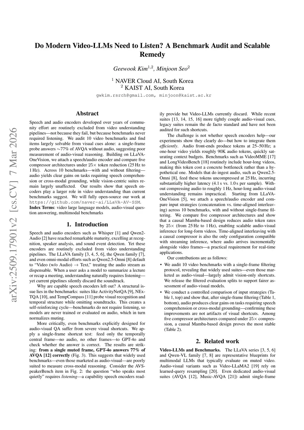 Do Modern Video-LLMs Need to Listen? A Benchmark Audit and Scalable Remedy