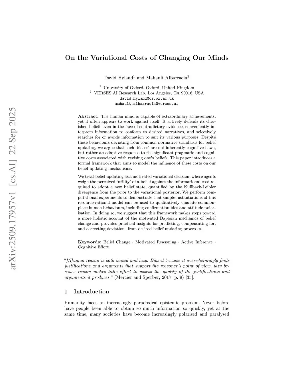 The human mind is capable of extraordinary achievements, yet it often appears to work against itself. It actively defends its cherished beliefs even in the face of contradictory evidence, conveniently interprets information to conform to desired narratives, and selectively searches for or avoids information to suit its various purposes. Despite these behaviours deviating from common normative standards for belief updating, we argue that such 'biases' are not inherently cognitive flaws, but rather an adaptive response to the significant pragmatic and cognitive costs associated with revising one's beliefs. This paper introduces a formal framework that aims to model the influence of these costs on our belief updating mechanisms.We treat belief updating as a motivated variational decision, where agents weigh the perceived útility' of a belief against the informational cost required to adopt a new belief state, quantified by the Kullback-Leibler divergence from the prior to the variational posterior. We perform computational experiments to demonstrate that simple instantiations of this resource-rational model can be used to qualitatively emulate commonplace human behaviours, including confirmation bias and attitude polarisation. In doing so, we suggest that this framework makes steps toward a more holistic account of the motivated Bayesian mechanics of belief change and provides practical insights for predicting, compensating for, and correcting deviations from desired belief updating processes.