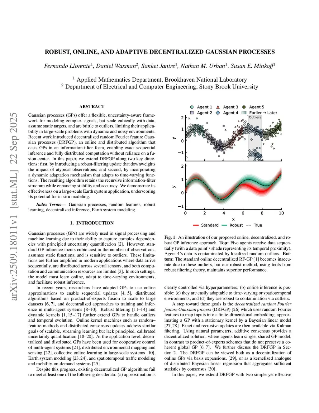 Gaussian processes (GPs) offer a flexible, uncertainty-aware framework for modeling complex signals, but scale cubically with data, assume static targets, and are brittle to outliers, limiting their applicability in large-scale problems with dynamic and noisy environments. Recent work introduced decentralized random Fourier feature Gaussian processes (DRFGP), an online and distributed algorithm that casts GPs in an information-filter form, enabling exact sequential inference and fully distributed computation without reliance on a fusion center. In this paper, we extend DRFGP along two key directions: first, by introducing a robust-filtering update that downweights the impact of atypical observations; and second, by incorporating a dynamic adaptation mechanism that adapts to time-varying functions. The resulting algorithm retains the recursive information-filter structure while enhancing stability and accuracy. We demonstrate its effectiveness on a large-scale Earth system application, underscoring its potential for in-situ modeling.