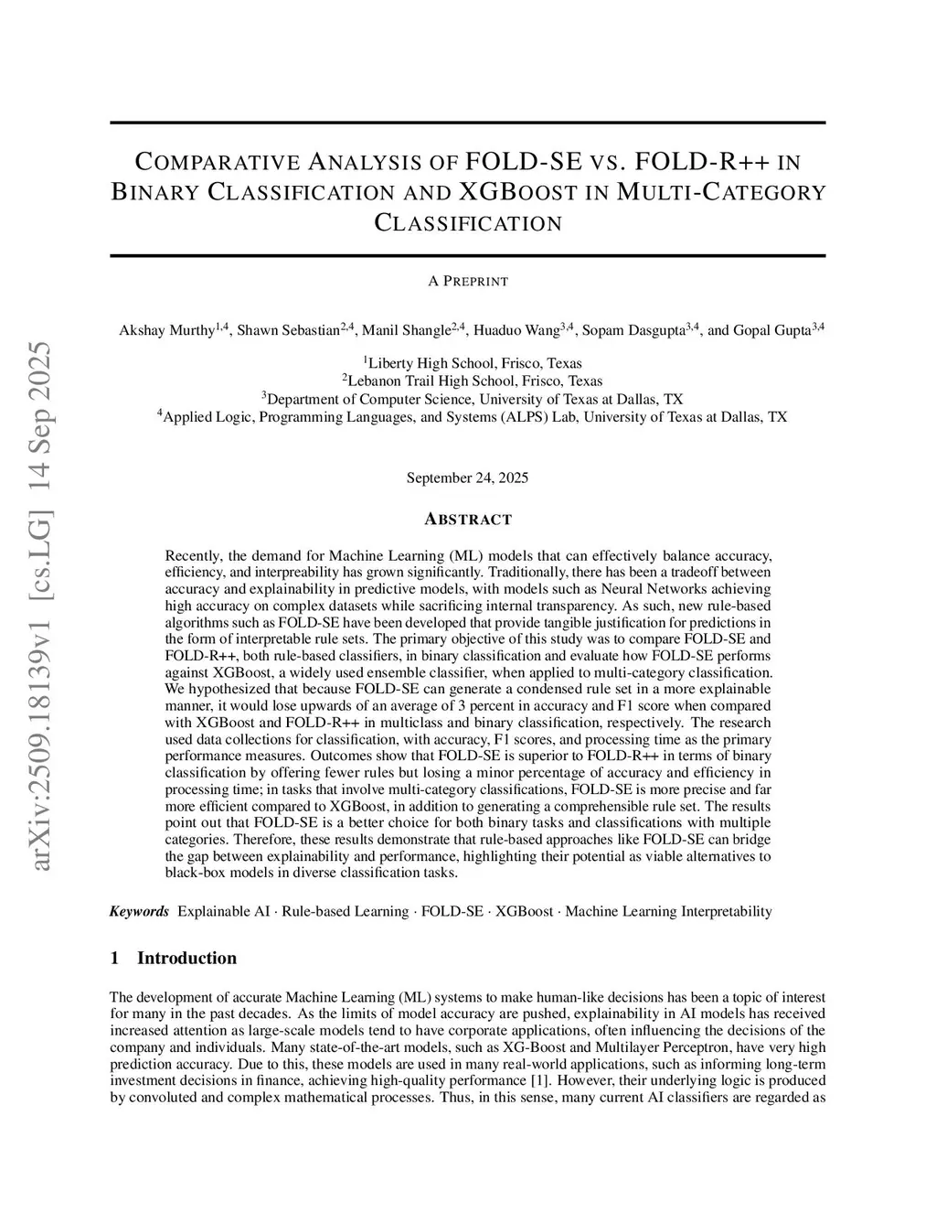 Recently, the demand for Machine Learning (ML) models that can balance accuracy, efficiency, and interpreability has grown significantly. Traditionally, there has been a tradeoff between accuracy and explainability in predictive models, with models such as Neural Networks achieving high accuracy on complex datasets while sacrificing internal transparency. As such, new rule-based algorithms such as FOLD-SE have been developed that provide tangible justification for predictions in the form of interpretable rule sets. The primary objective of this study was to compare FOLD-SE and FOLD-R++, both rule-based classifiers, in binary classification and evaluate how FOLD-SE performs against XGBoost, a widely used ensemble classifier, when applied to multi-category classification. We hypothesized that because FOLD-SE can generate a condensed rule set in a more explainable manner, it would lose upwards of an average of 3 percent in accuracy and F1 score when compared with XGBoost and FOLD-R++ in multiclass and binary classification, respectively. The research used data collections for classification, with accuracy, F1 scores, and processing time as the primary performance measures. Outcomes show that FOLD-SE is superior to FOLD-R++ in terms of binary classification by offering fewer rules but losing a minor percentage of accuracy and efficiency in processing time; in tasks that involve multi-category classifications, FOLD-SE is more precise and far more efficient compared to XGBoost, in addition to generating a comprehensible rule set. The results point out that FOLD-SE is a better choice for both binary tasks and classifications with multiple categories. Therefore, these results demonstrate that rule-based approaches like FOLD-SE can bridge the gap between explainability and performance, highlighting their potential as viable alternatives to black-box models in diverse classification tasks.