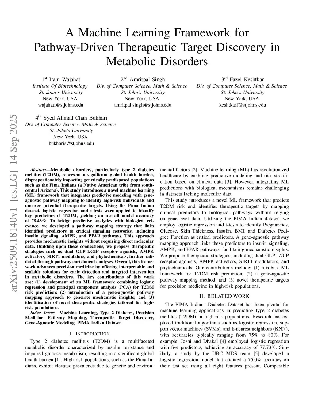 A Machine Learning Framework for Pathway-Driven Therapeutic Target Discovery in Metabolic Disorders