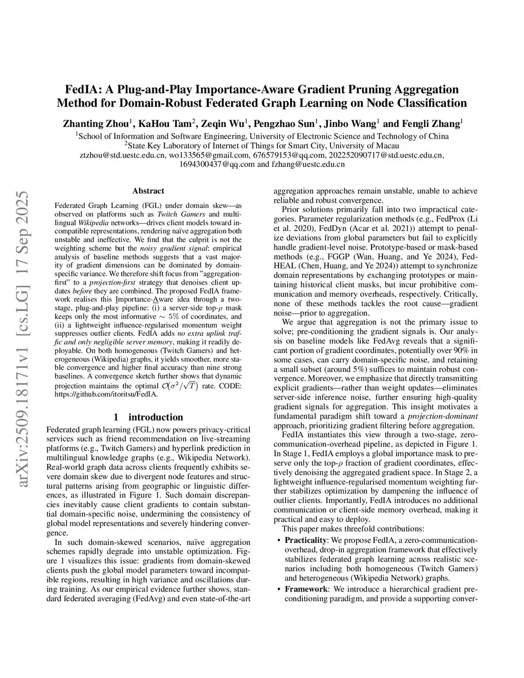 FedIA: A Plug-and-Play Importance-Aware Gradient Pruning Aggregation Method for Domain-Robust Federated Graph Learning on Node Classification