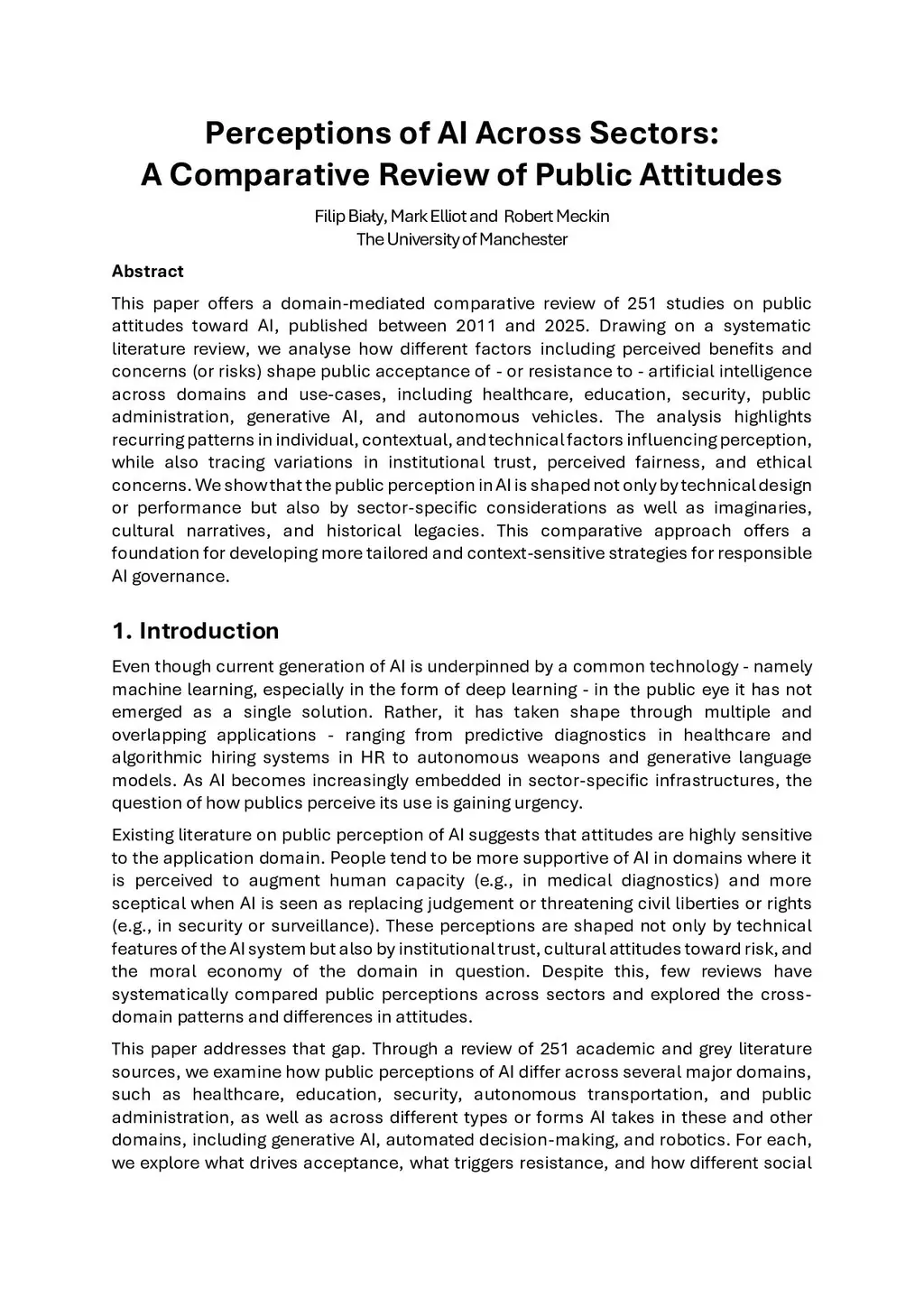 Perceptions of AI Across Sectors: A Comparative Review of Public Attitudes