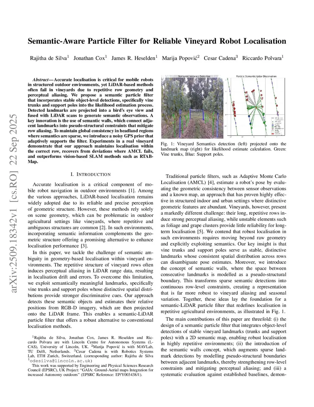 Semantic-Aware Particle Filter for Reliable Vineyard Robot Localisation