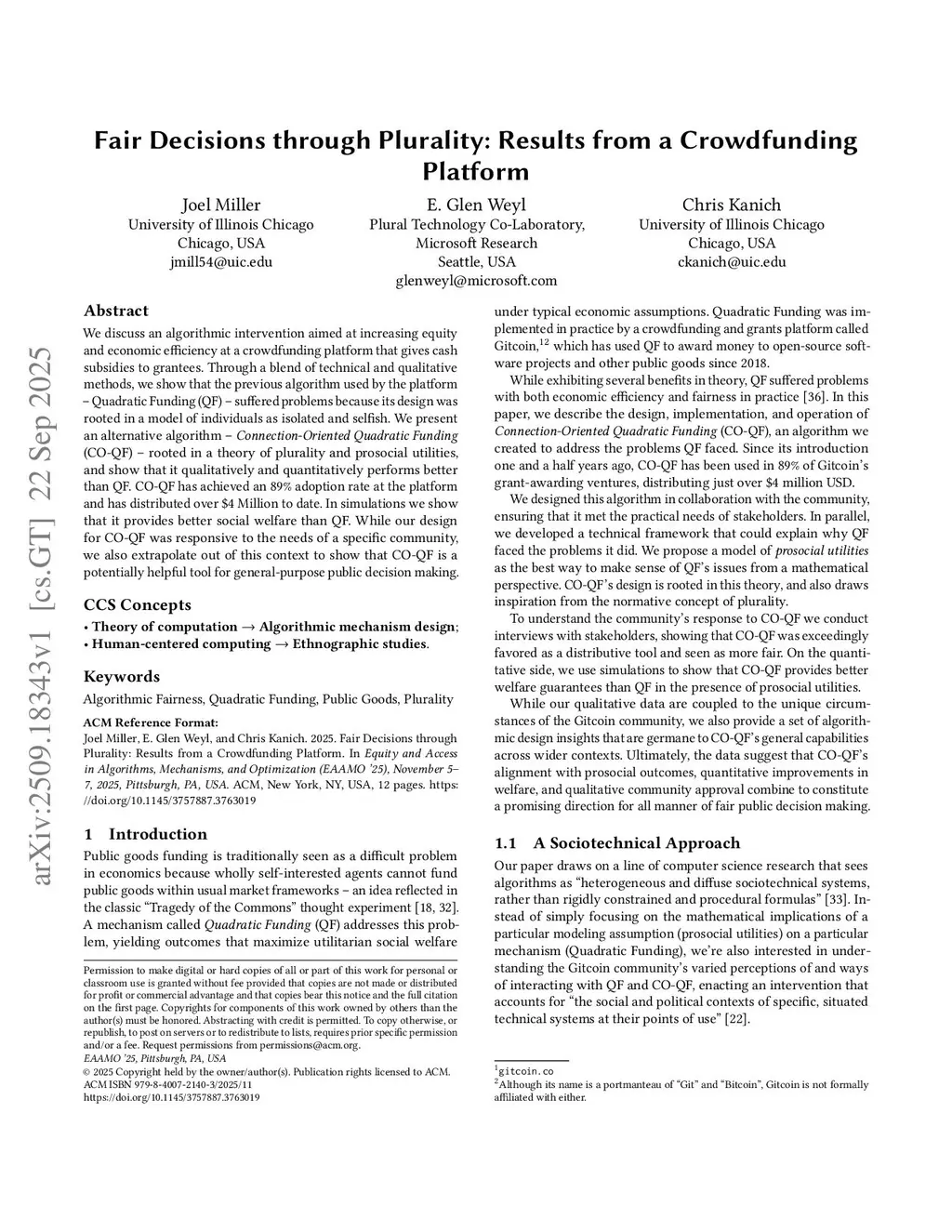 Fair Decisions through Plurality: Results from a Crowdfunding Platform