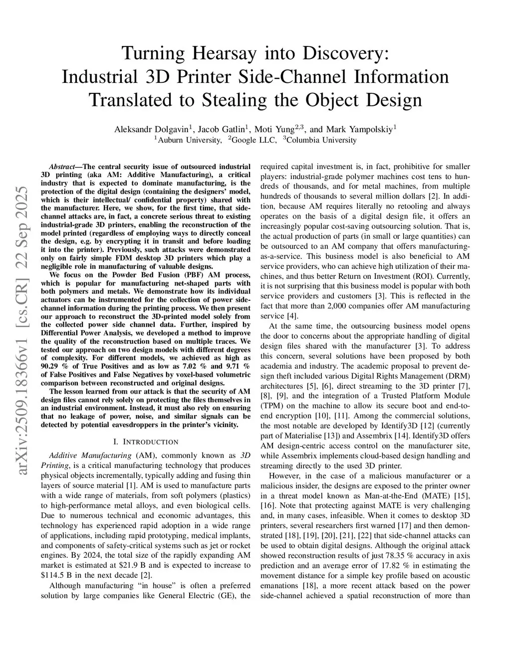 Turning Hearsay into Discovery: Industrial 3D Printer Side Channel Information Translated to Stealing the Object Design