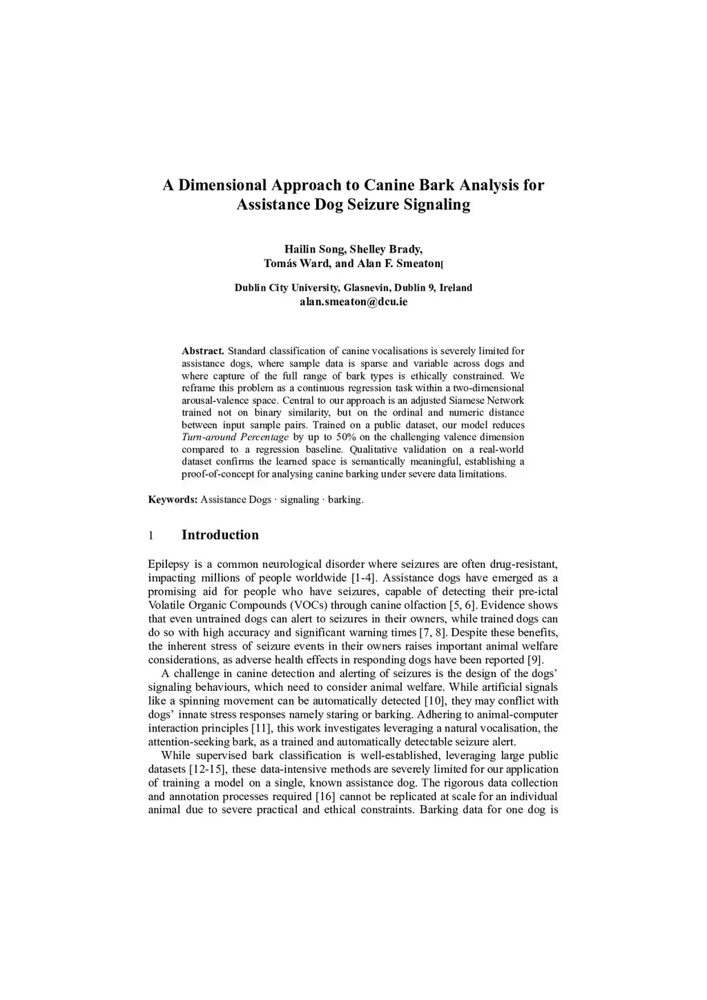A Dimensional Approach to Canine Bark Analysis for Assistance Dog Seizure Signaling