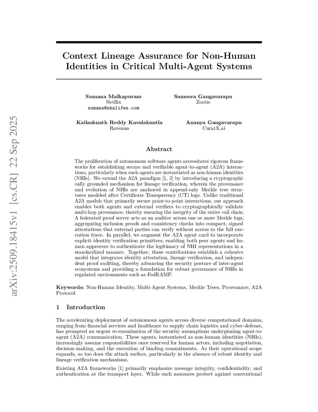 Context Lineage Assurance for Non-Human Identities in Critical Multi-Agent Systems