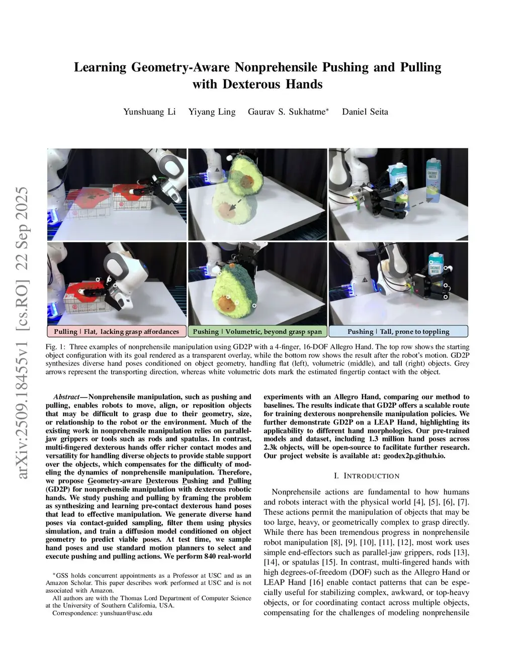 Learning Geometry-Aware Nonprehensile Pushing and Pulling with Dexterous Hands