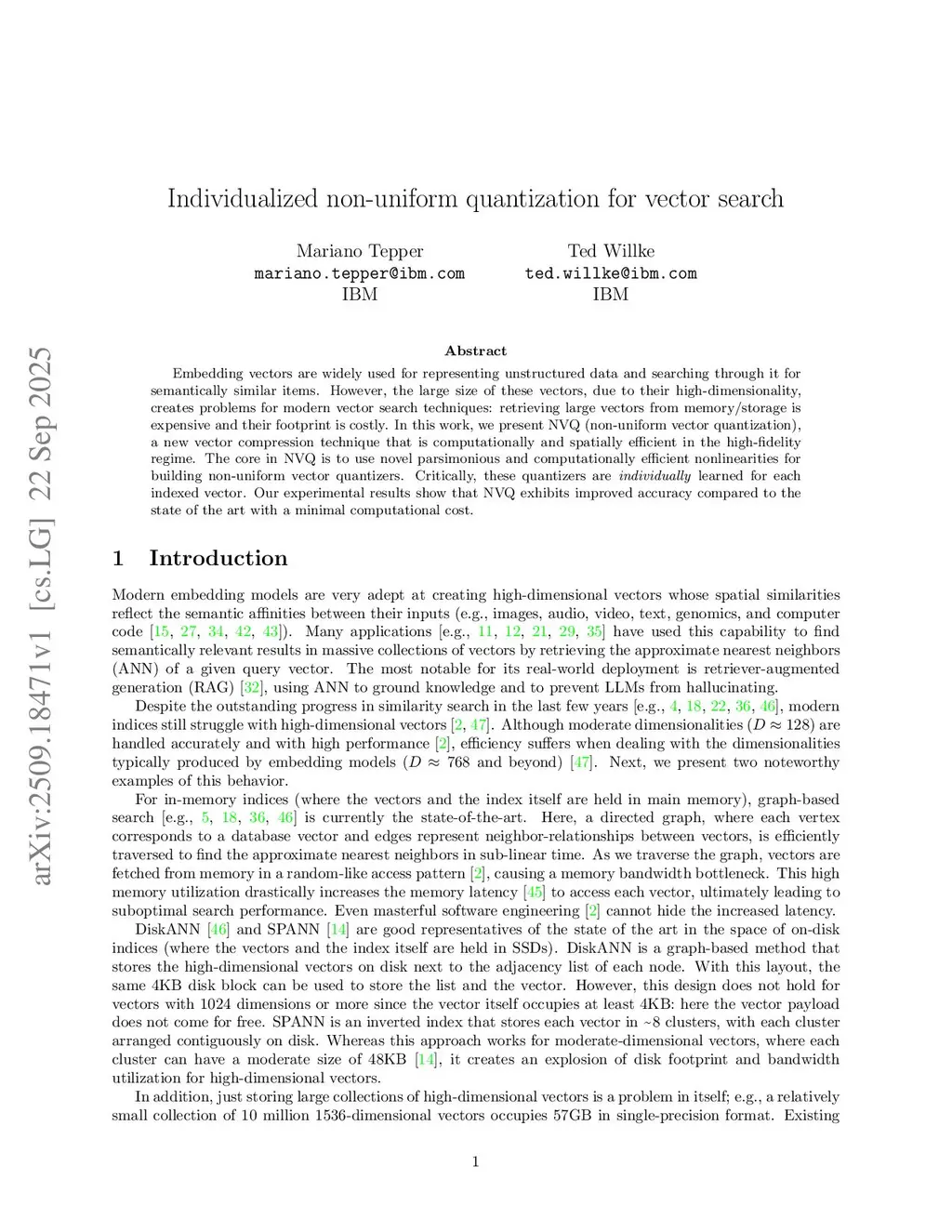 Individualized non-uniform quantization for vector search