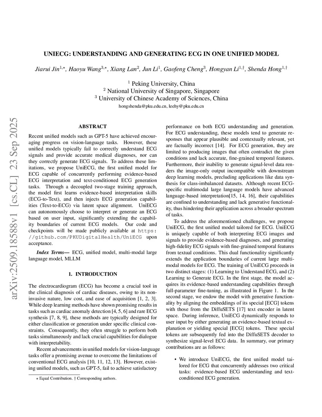 UniECG: Understanding and Generating ECG in One Unified Model