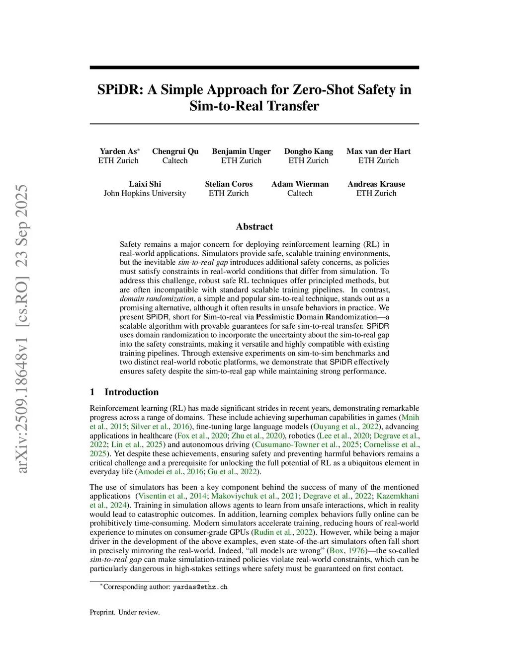 SPiDR: A Simple Approach for Zero-Shot Safety in Sim-to-Real Transfer