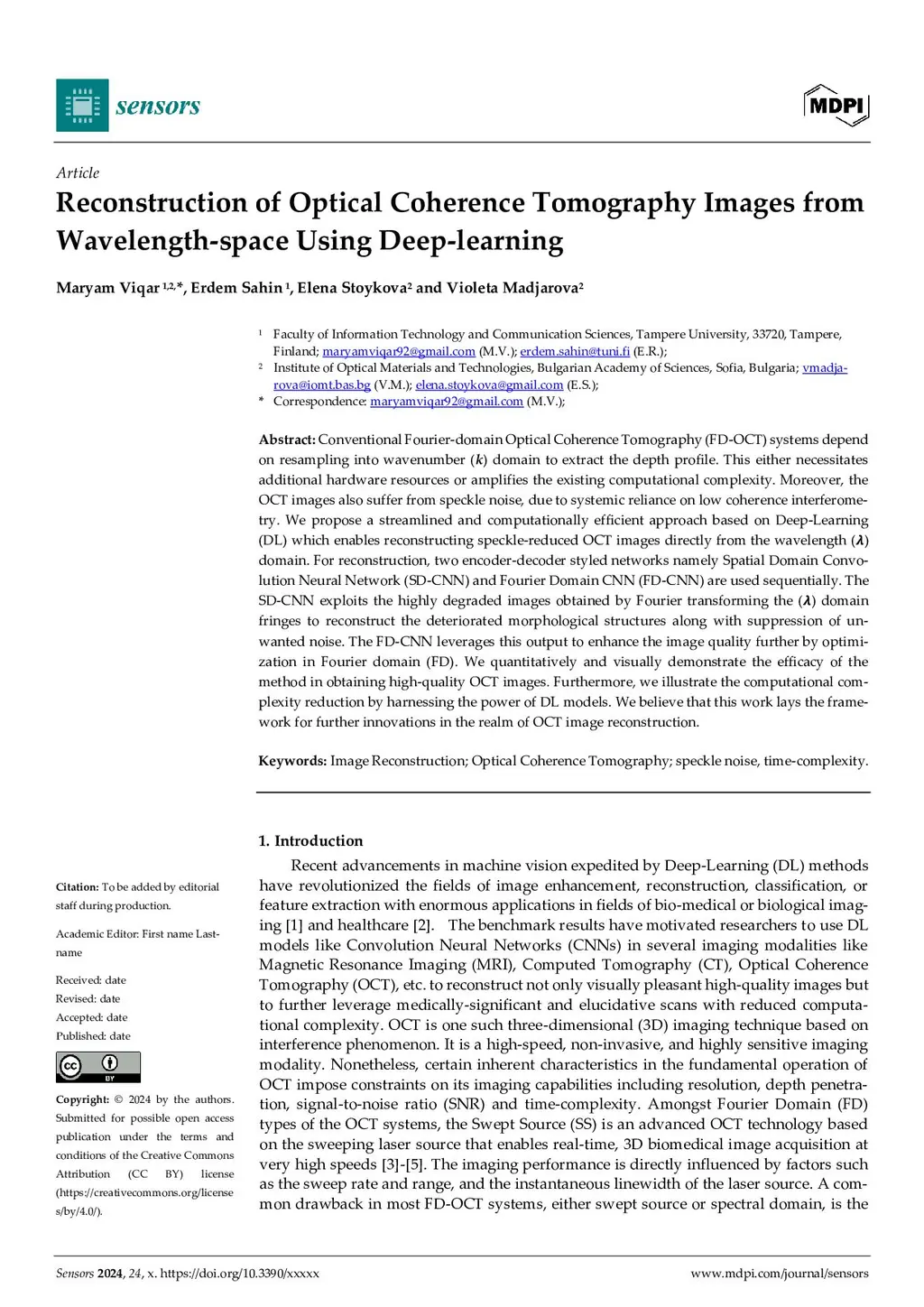 Reconstruction of Optical Coherence Tomography Images from Wavelength-space Using Deep-learning
