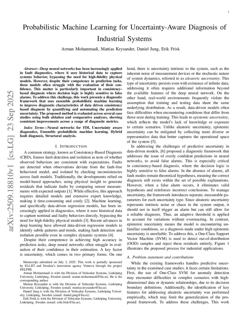Probabilistic Machine Learning for Uncertainty-Aware Diagnosis of Industrial Systems