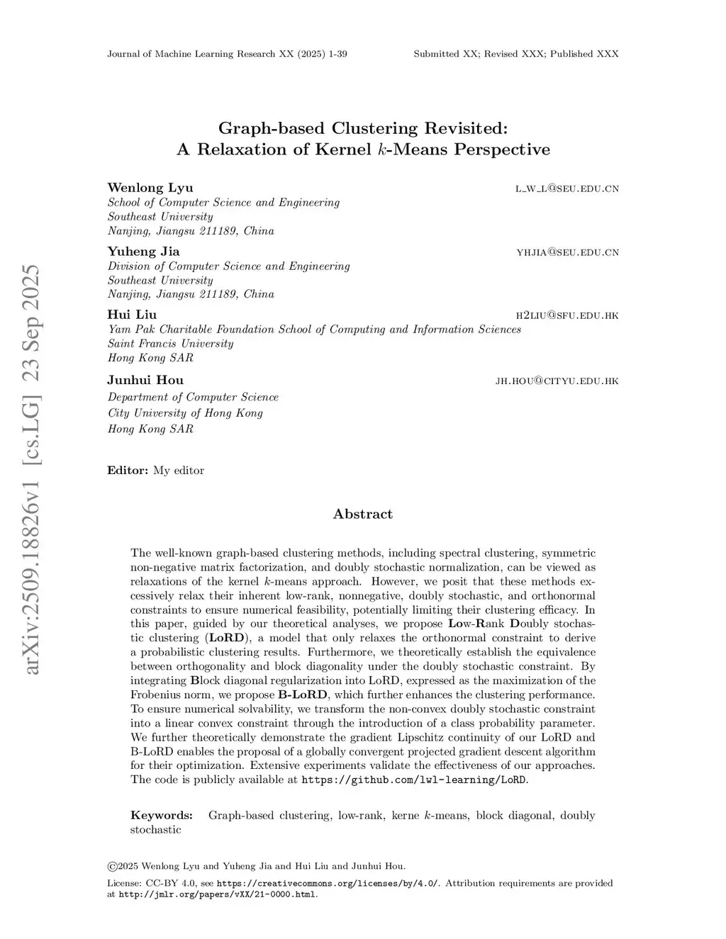 The well-known graph-based clustering methods, including spectral clustering, symmetric non-negative matrix factorization, and doubly stochastic normalization, can be viewed as relaxations of the kernel -means approach. However, we posit that these methods excessively relax their inherent low-rank, nonnegative, doubly stochastic, and orthonormal constraints to ensure numerical feasibility, potentially limiting their clustering efficacy. In this paper, guided by our theoretical analyses, we propose \textbf{Lo}w-\textbf{R}ank \textbf{D}oubly stochastic clustering (\textbf{LoRD}), a model that only relaxes the orthonormal constraint to derive a probabilistic clustering results. Furthermore, we theoretically establish the equivalence between orthogonality and block diagonality under the doubly stochastic constraint. By integrating \textbf{B}lock diagonal regularization into LoRD, expressed as the maximization of the Frobenius norm, we propose \textbf{B-LoRD}, which further enhances the clustering performance. To ensure numerical solvability, we transform the non-convex doubly stochastic constraint into a linear convex constraint through the introduction of a class probability parameter. We further theoretically demonstrate the gradient Lipschitz continuity of our LoRD and B-LoRD enables the proposal of a globally convergent projected gradient descent algorithm for their optimization. Extensive experiments validate the effectiveness of our approaches. The code is publicly available atthis https URL.