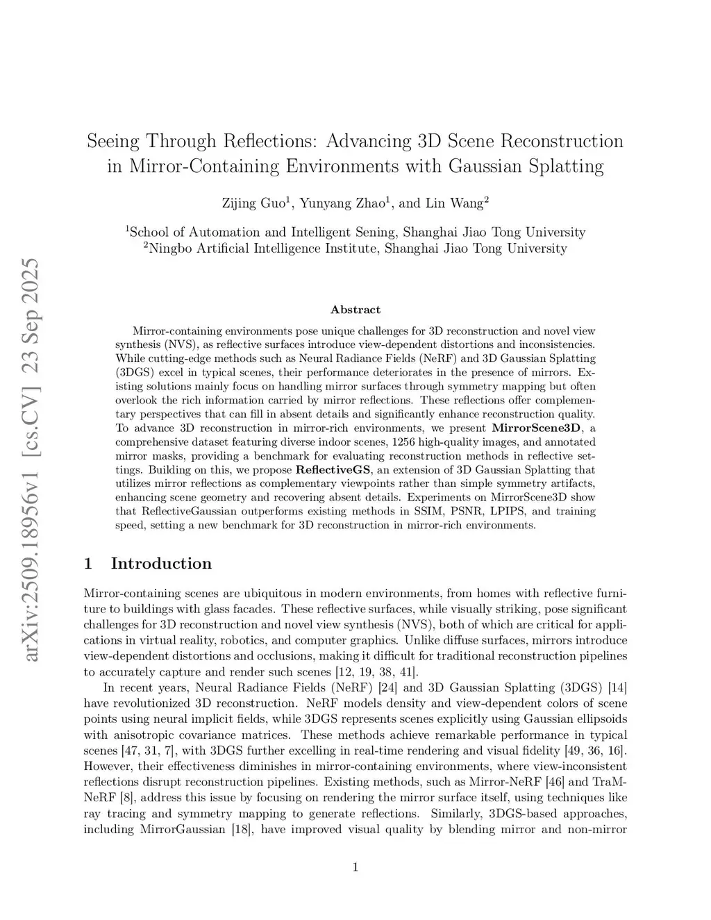 Seeing Through Reflections: Advancing 3D Scene Reconstruction in Mirror-Containing Environments with Gaussian Splatting