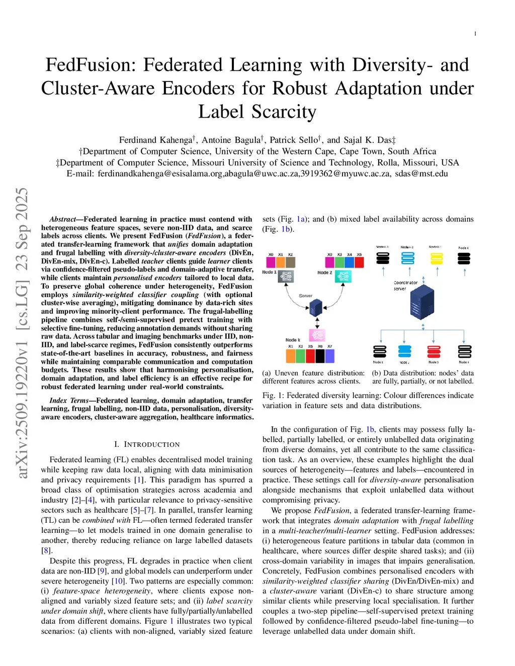 FedFusion: Federated Learning with Diversity- and Cluster-Aware Encoders for Robust Adaptation under Label Scarcity