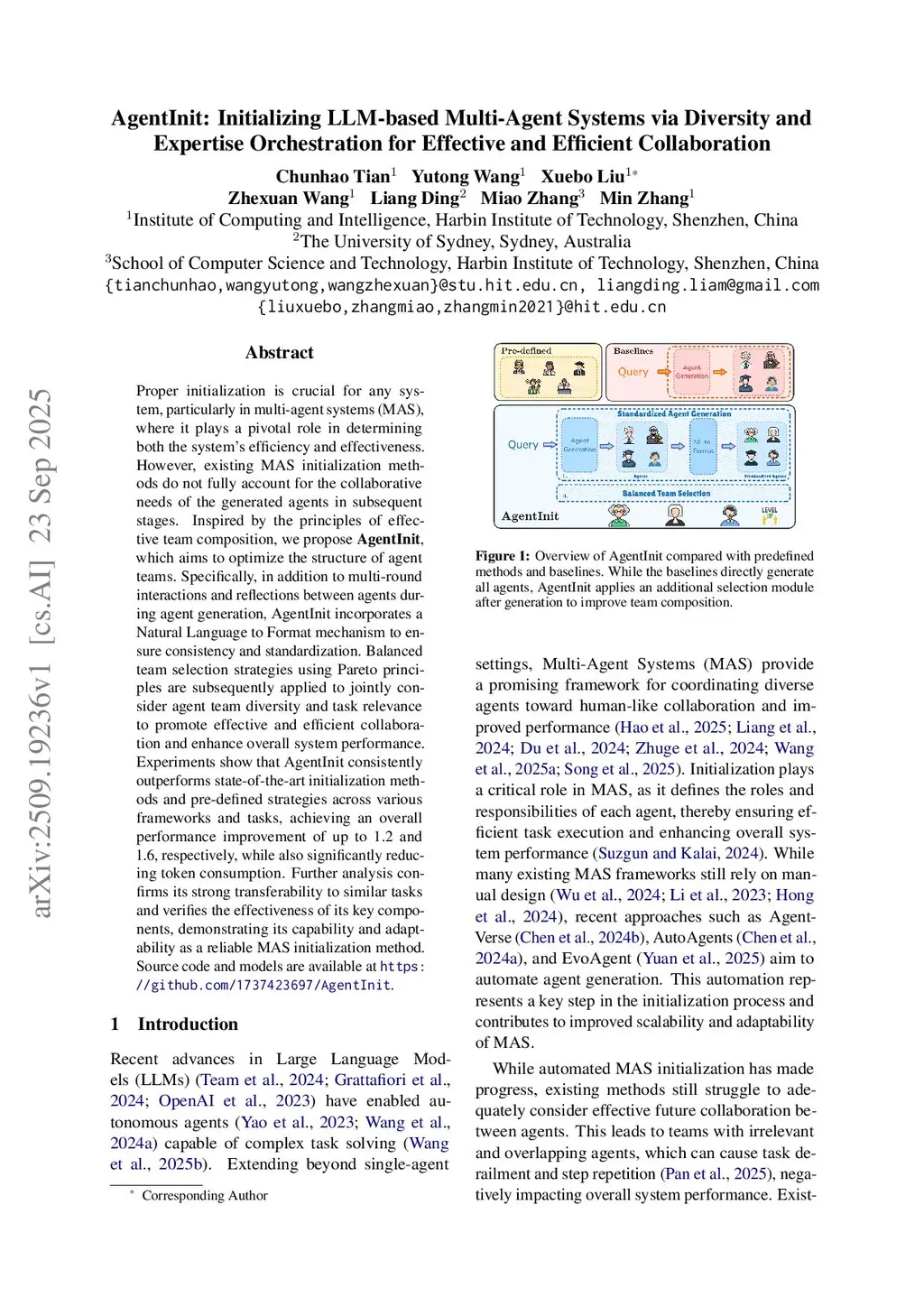 AgentInit: Initializing LLM-based Multi-Agent Systems via Diversity and Expertise Orchestration for Effective and Efficient Collaboration