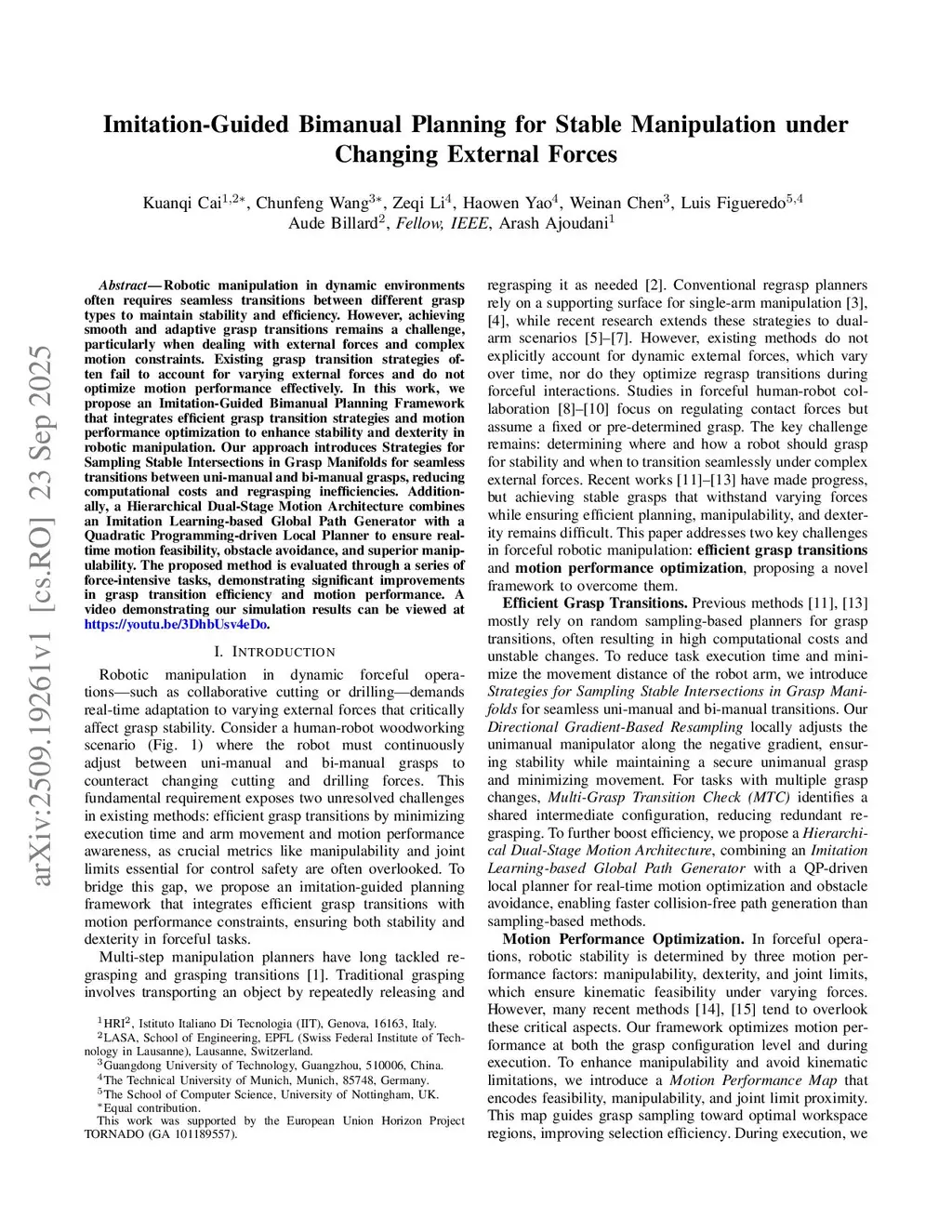 Imitation-Guided Bimanual Planning for Stable Manipulation under Changing External Forces