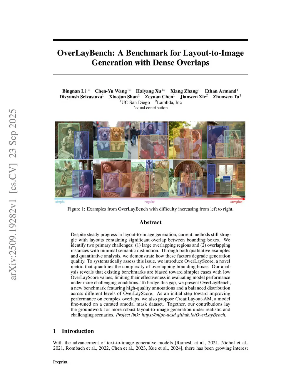 Despite steady progress in layout-to-image generation, current methods still struggle with layouts containing significant overlap between bounding boxes. We identify two primary challenges: (1) large overlapping regions and (2) overlapping instances with minimal semantic distinction. Through both qualitative examples and quantitative analysis, we demonstrate how these factors degrade generation quality. To systematically assess this issue, we introduce OverLayScore, a novel metric that quantifies the complexity of overlapping bounding boxes. Our analysis reveals that existing benchmarks are biased toward simpler cases with low OverLayScore values, limiting their effectiveness in evaluating model performance under more challenging conditions. To bridge this gap, we present OverLayBench, a new benchmark featuring high-quality annotations and a balanced distribution across different levels of OverLayScore. As an initial step toward improving performance on complex overlaps, we also propose CreatiLayout-AM, a model fine-tuned on a curated amodal mask dataset. Together, our contributions lay the groundwork for more robust layout-to-image generation under realistic and challenging scenarios. Project link:this https URL.