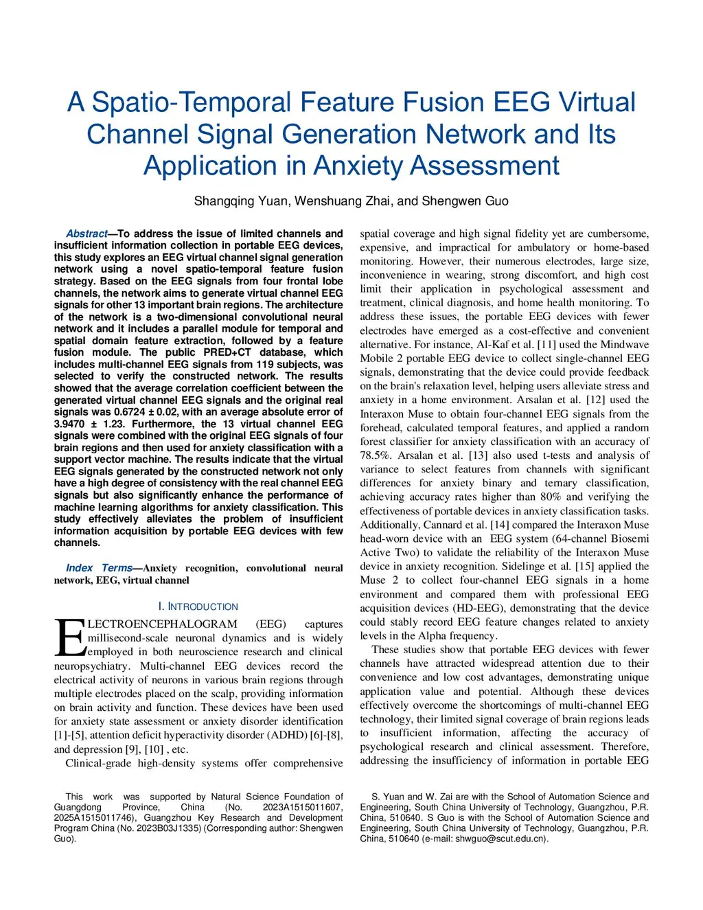 A Spatio-Temporal Feature Fusion EEG Virtual Channel Signal Generation Network and Its Application in Anxiety Assessment