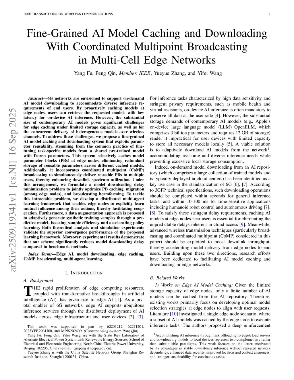 Fine-Grained AI Model Caching and Downloading With Coordinated Multipoint Broadcasting in Multi-Cell Edge Networks