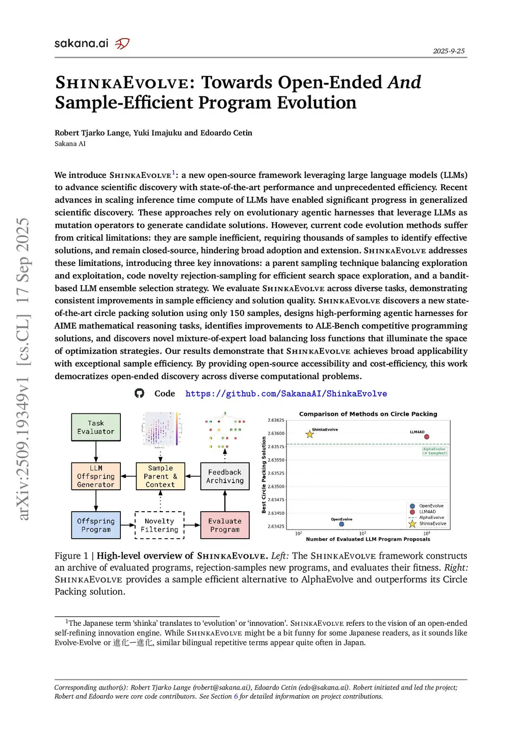 ShinkaEvolve: Towards Open-Ended And Sample-Efficient Program Evolution