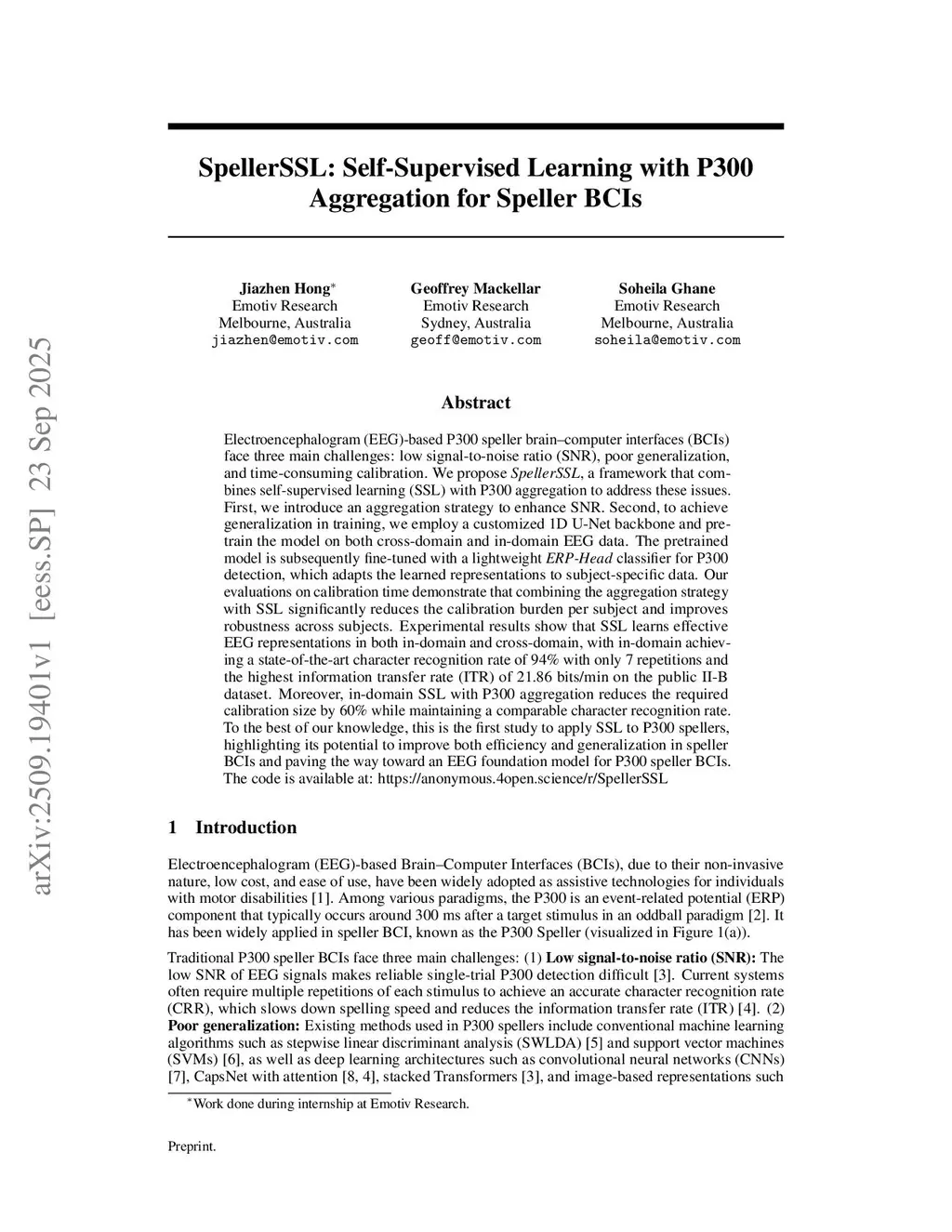 SpellerSSL: Self-Supervised Learning with P300 Aggregation for Speller BCIs