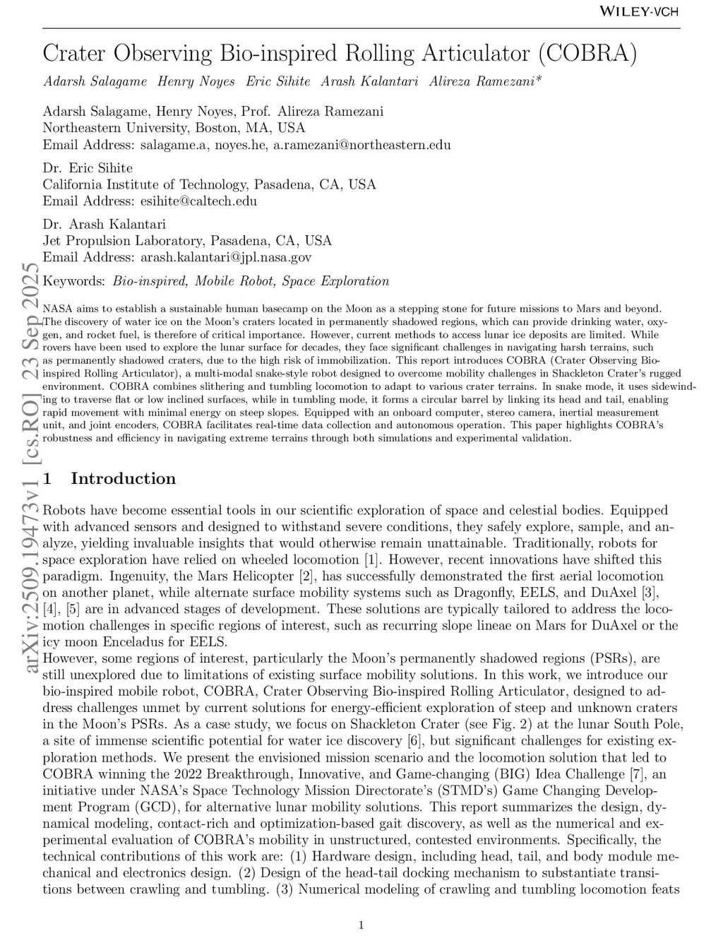 Crater Observing Bio-inspired Rolling Articulator (COBRA)