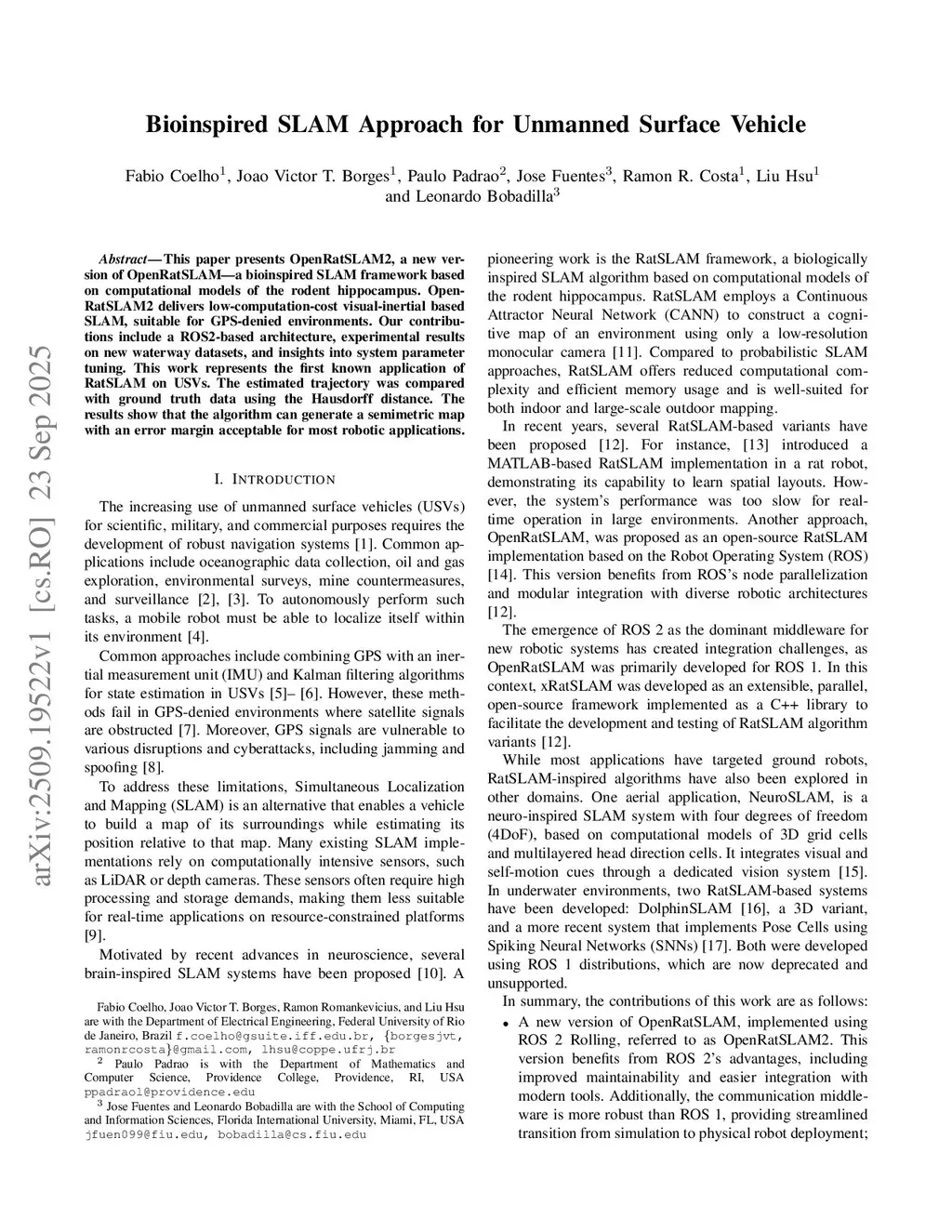 Bioinspired SLAM Approach for Unmanned Surface Vehicle