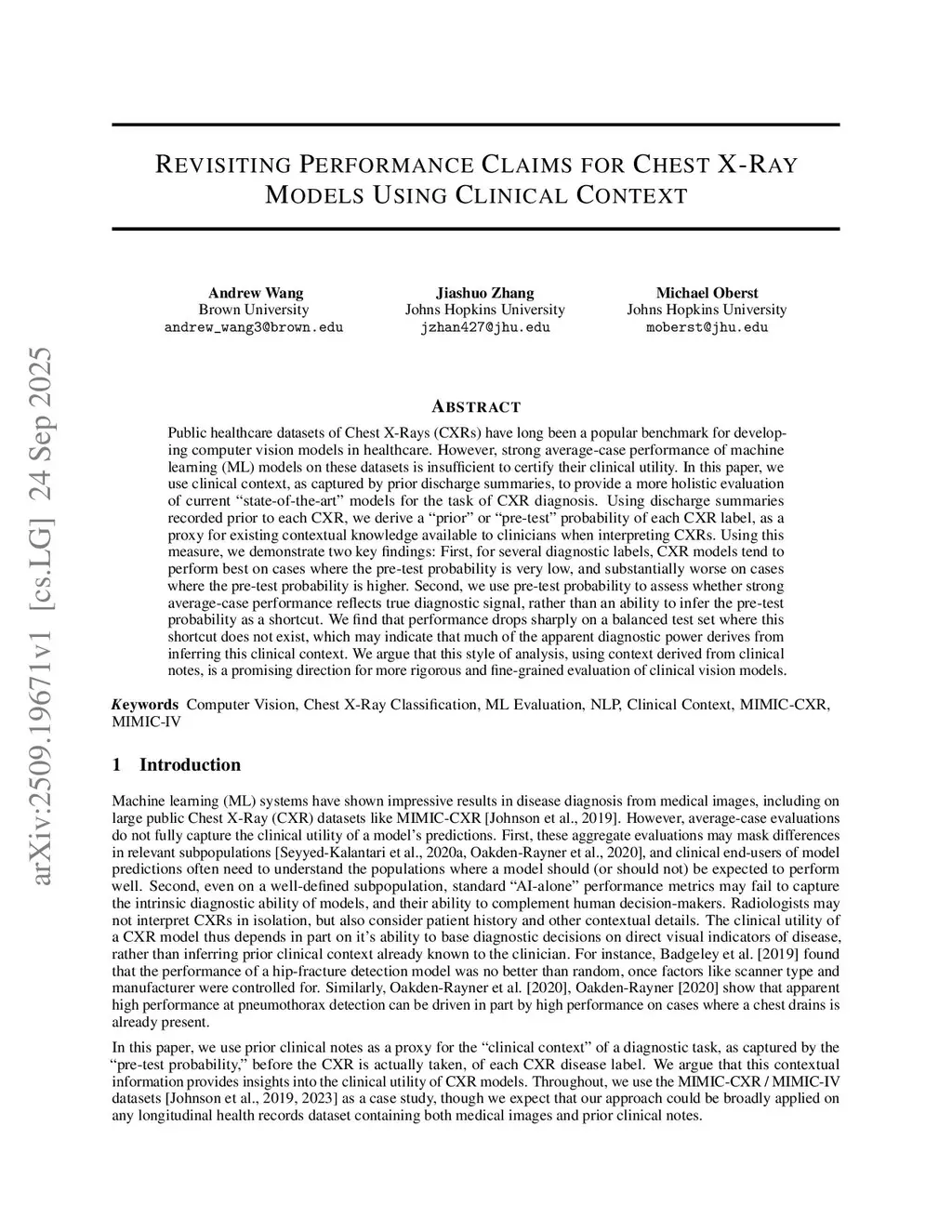 Revisiting Performance Claims for Chest X-Ray Models Using Clinical Context