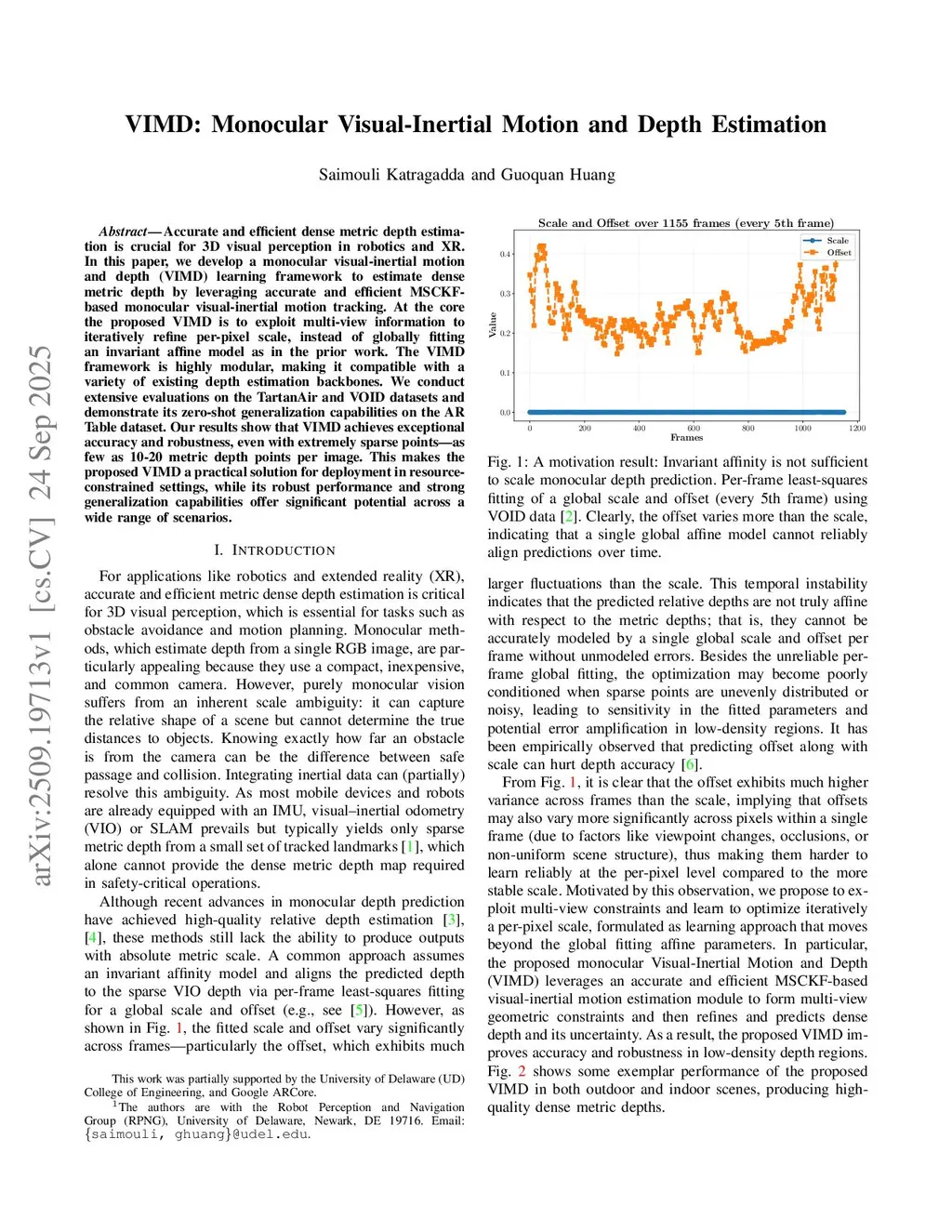 VIMD: Monocular Visual-Inertial Motion and Depth Estimation