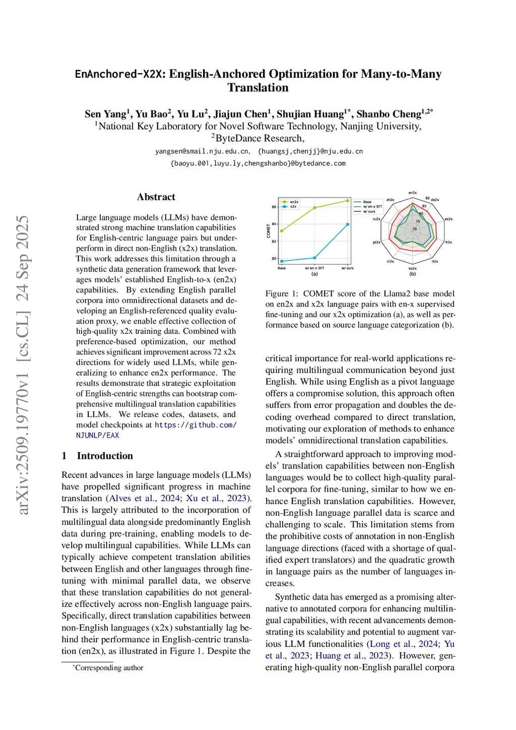 EnAnchored-X2X: English-Anchored Optimization for Many-to-Many Translation