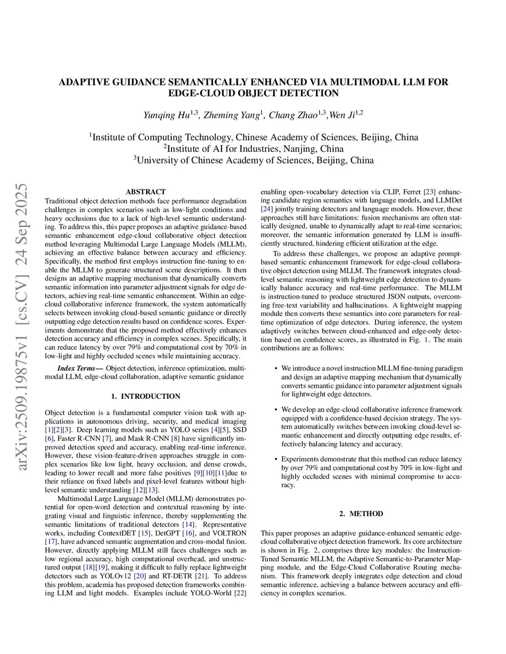 Adaptive Guidance Semantically Enhanced via Multimodal LLM for Edge-Cloud Object Detection
