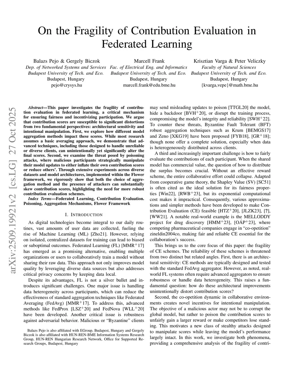This paper investigates the fragility of contribution evaluation in federated learning, a critical mechanism for ensuring fairness and incentivizing participation. We argue that contribution scores are susceptible to significant distortions from two fundamental perspectives: architectural sensitivity and intentional manipulation. First, we explore how different model aggregation methods impact these scores. While most research assumes a basic averaging approach, we demonstrate that advanced techniques, including those designed to handle unreliable or diverse clients, can unintentionally yet significantly alter the final scores. Second, we explore vulnerabilities posed by poisoning attacks, where malicious participants strategically manipulate their model updates to inflate their own contribution scores or reduce the importance of other participants. Through extensive experiments across diverse datasets and model architectures, implemented within the Flower framework, we rigorously show that both the choice of aggregation method and the presence of attackers are potent vectors for distorting contribution scores, highlighting a critical need for more robust evaluation schemes.