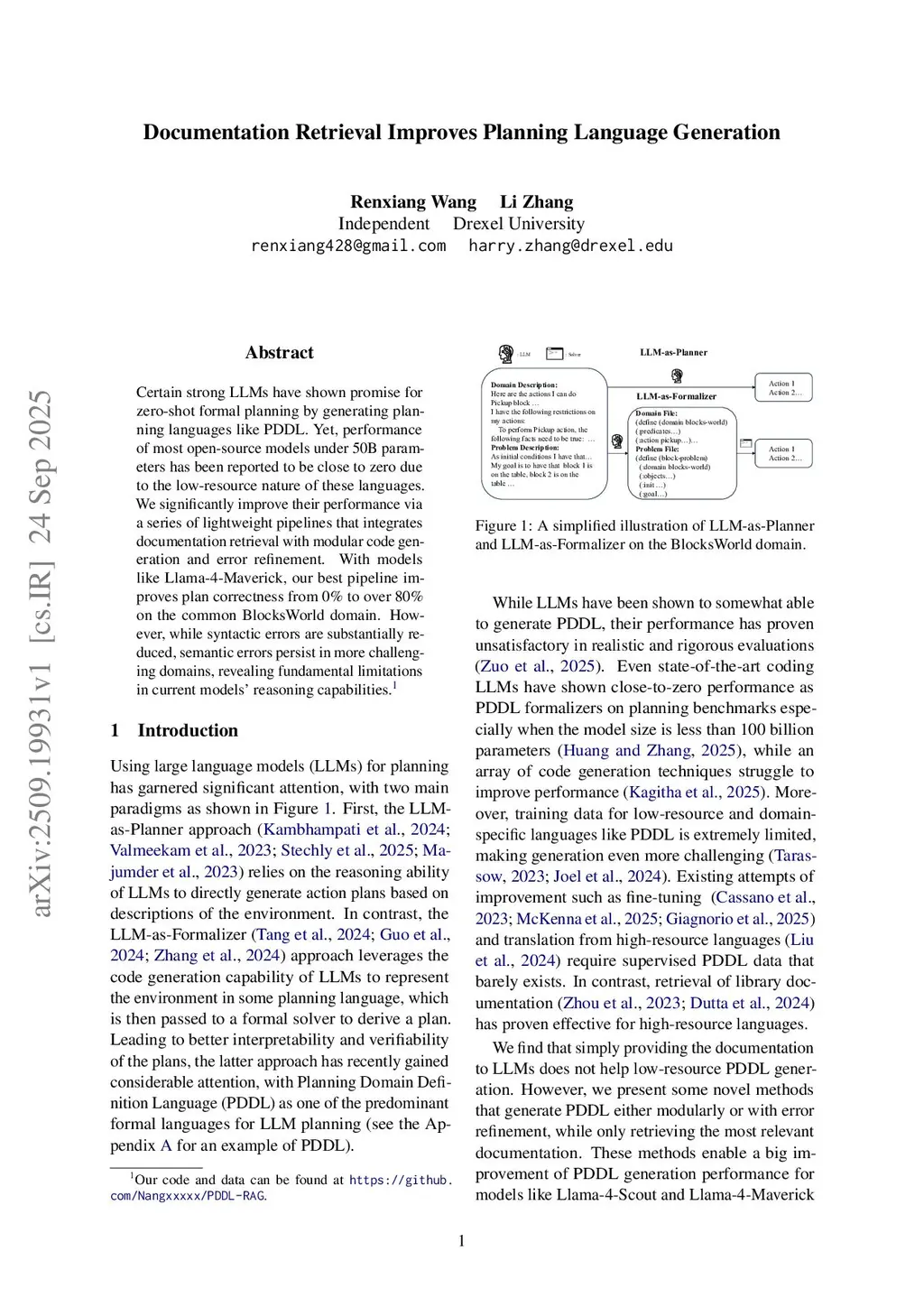 Documentation Retrieval Improves Planning Language Generation