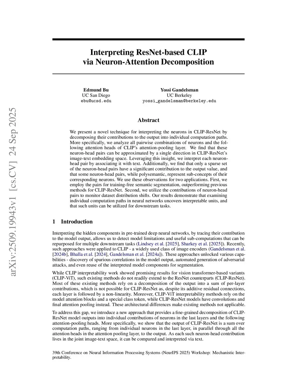 We present a novel technique for interpreting the neurons in CLIP-ResNet by decomposing their contributions to the output into individual computation paths. More specifically, we analyze all pairwise combinations of neurons and the following attention heads of CLIP's attention-pooling layer. We find that these neuron-head pairs can be approximated by a single direction in CLIP-ResNet's image-text embedding space. Leveraging this insight, we interpret each neuron-head pair by associating it with text. Additionally, we find that only a sparse set of the neuron-head pairs have a significant contribution to the output value, and that some neuron-head pairs, while polysemantic, represent sub-concepts of their corresponding neurons. We use these observations for two applications. First, we employ the pairs for training-free semantic segmentation, outperforming previous methods for CLIP-ResNet. Second, we utilize the contributions of neuron-head pairs to monitor dataset distribution shifts. Our results demonstrate that examining individual computation paths in neural networks uncovers interpretable units, and that such units can be utilized for downstream tasks.