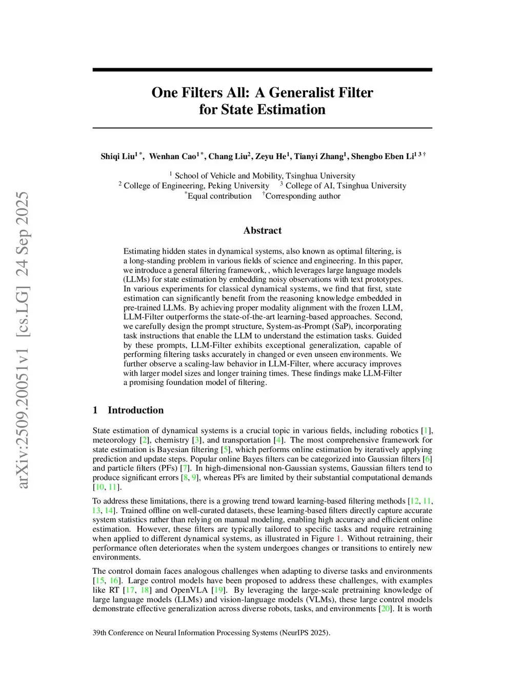 Estimating hidden states in dynamical systems, also known as optimal filtering, is a long-standing problem in various fields of science and engineering. In this paper, we introduce a general filtering framework, \textbf{LLM-Filter}, which leverages large language models (LLMs) for state estimation by embedding noisy observations with text prototypes. In various experiments for classical dynamical systems, we find that first, state estimation can significantly benefit from the reasoning knowledge embedded in pre-trained LLMs. By achieving proper modality alignment with the frozen LLM, LLM-Filter outperforms the state-of-the-art learning-based approaches. Second, we carefully design the prompt structure, System-as-Prompt (SaP), incorporating task instructions that enable the LLM to understand the estimation tasks. Guided by these prompts, LLM-Filter exhibits exceptional generalization, capable of performing filtering tasks accurately in changed or even unseen environments. We further observe a scaling-law behavior in LLM-Filter, where accuracy improves with larger model sizes and longer training times. These findings make LLM-Filter a promising foundation model of filtering.