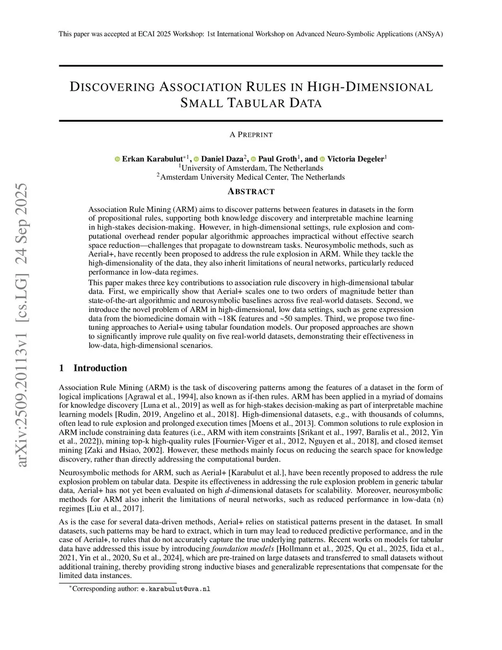 Discovering Association Rules in High-Dimensional Small Tabular Data